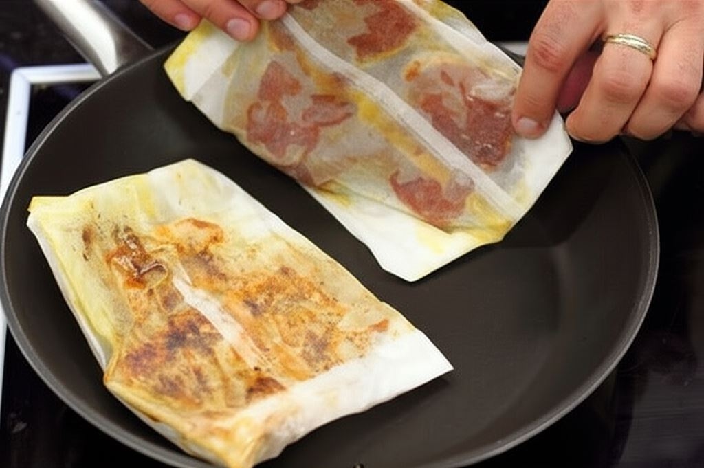 Mięso smaż na średnio nagrzanej patelni około 5-6 minut z każdej strony.
