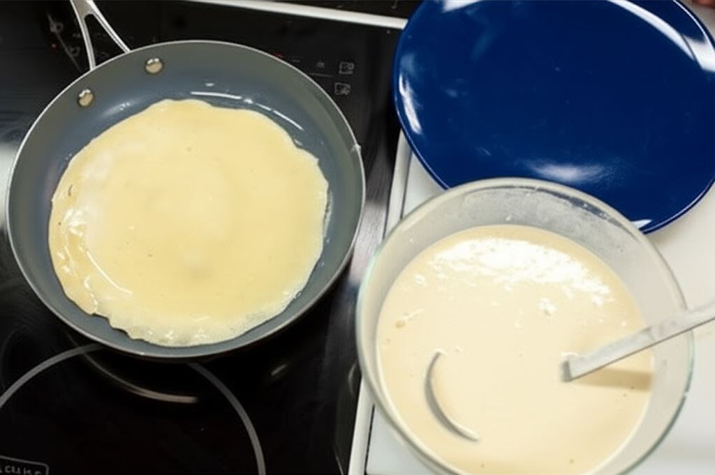 Sporządź ciasto naleśnikowe, a następnie usmaż je na nagrzanej patelni.