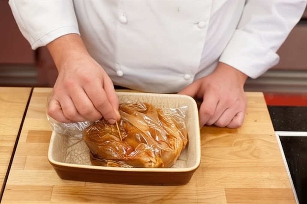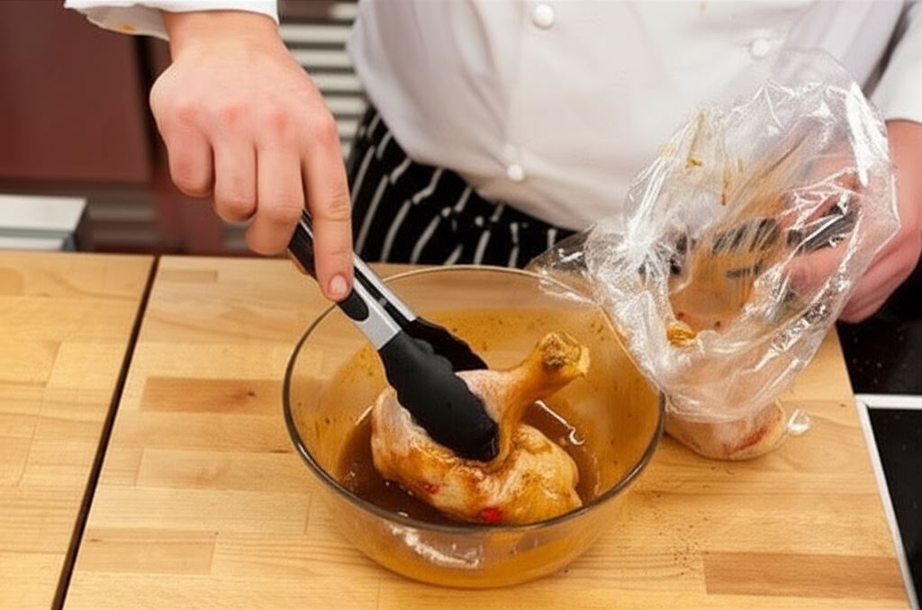 Przygotowaną marynatą posmaruj udka kurczaka, po czym umieść je w rękawie do pieczenia.