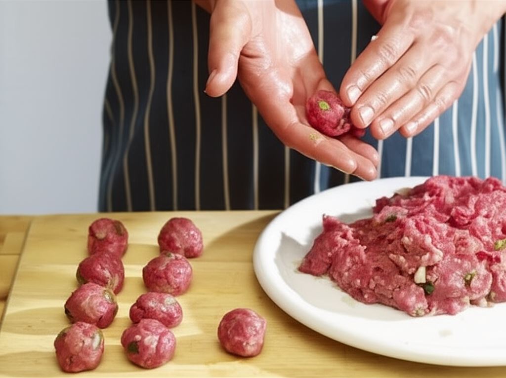 Mięso przenieś do miski i starannie wymieszaj z przygotowanym Fixem. Po upływie tego czasu formuj niewielkie klopsiki.