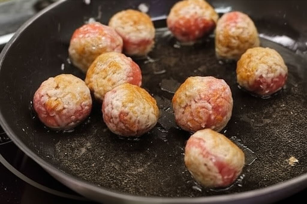 Kulki podsmaż na patelni i dopiecz w piekarniku rozgrzanym do 180°C przez około 10 minut.