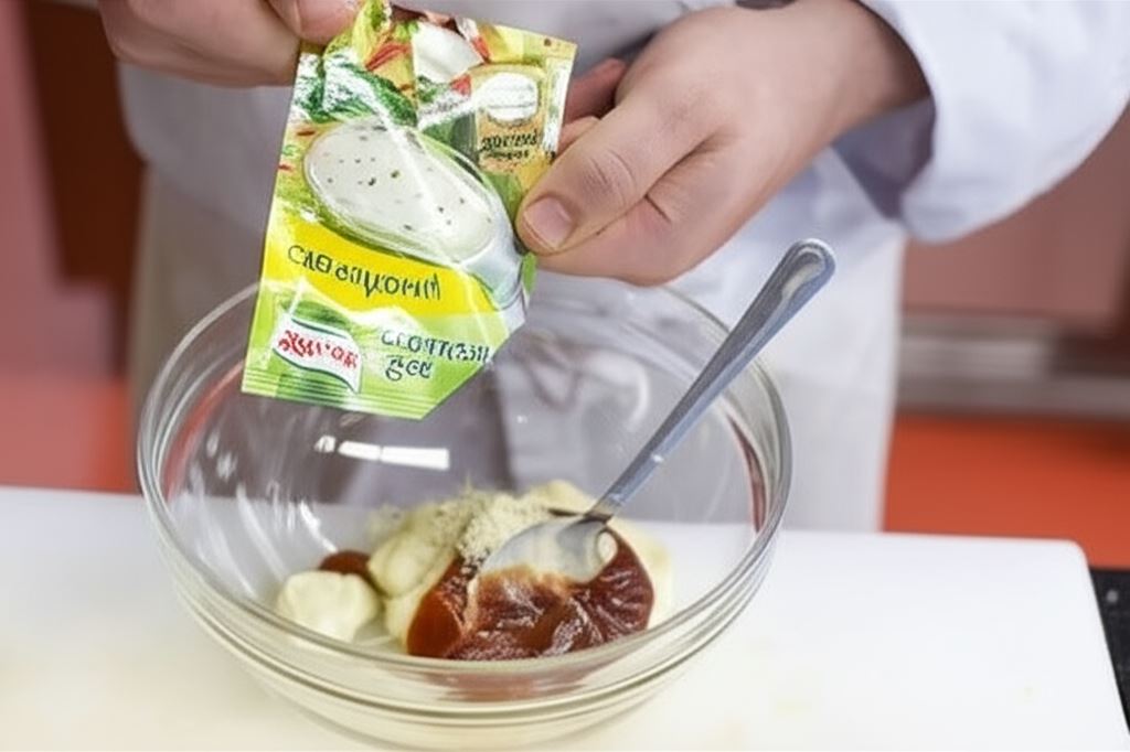 Połącz majonez z ketchupem oraz sosem sałatkowym Knorr.