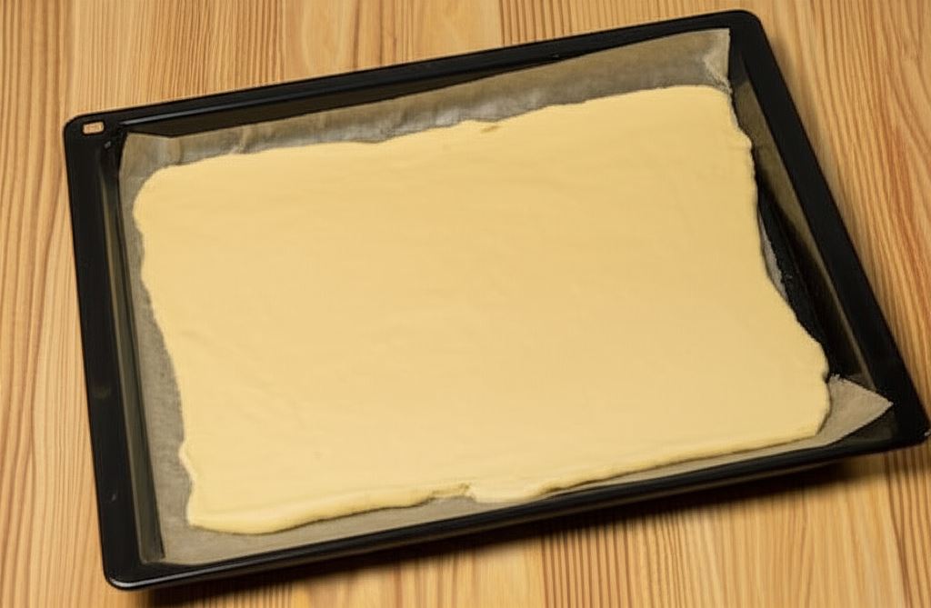 Ciasto rozprowadź na grubość ok 2-3mm na wymiar blaszki do piekarnika. Wypiecz w temperaturze 170 stopni przez 15 minut. Upieczony płat ciasta potnij na prostokąty.