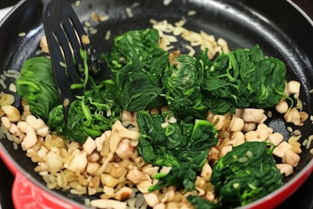 Ser feta pokrój w kostkę, szpinak odmroź i wyciśnij z nadmiaru wody.
