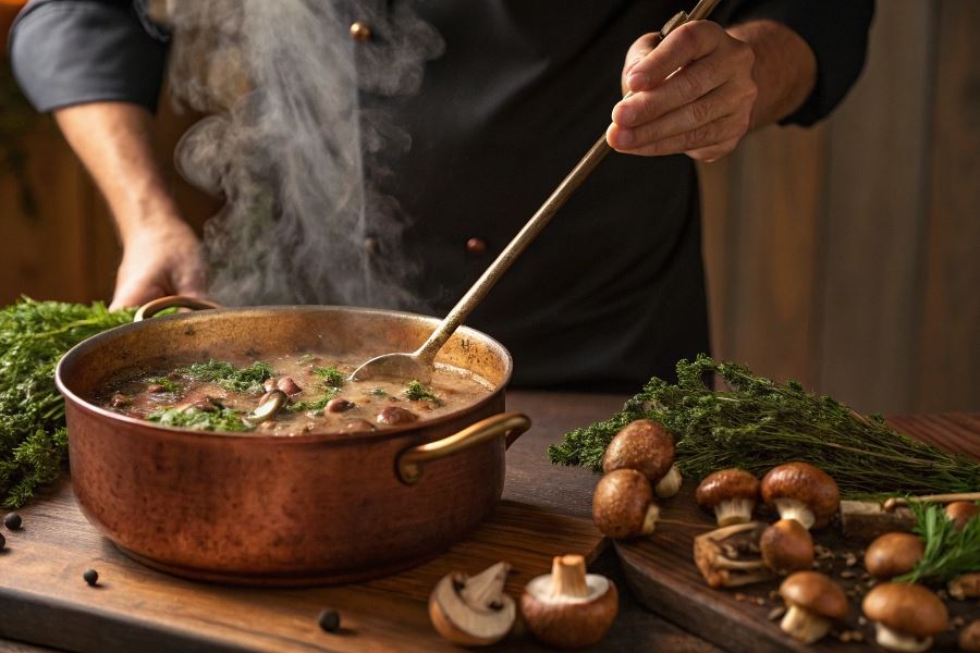- Grzyby suszone (borowiki, podgrzybki) – oferują intensywny aromat i głęboki smak. Przed użyciem wymagają namoczenia przez minimum 30 minut. Woda z moczenia stanowi doskonałą bazę smakową.