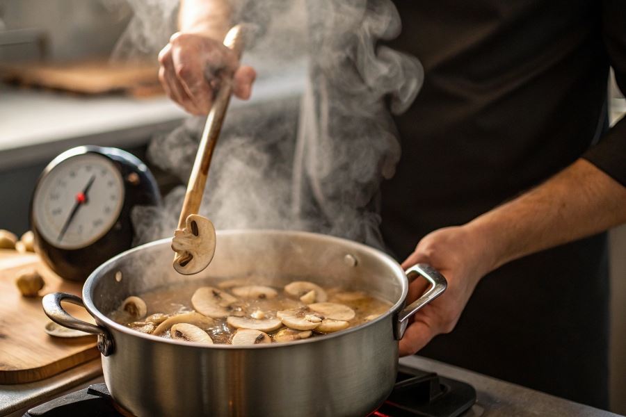 Strategiczne dodawanie pieczarek na różnych etapach gotowania