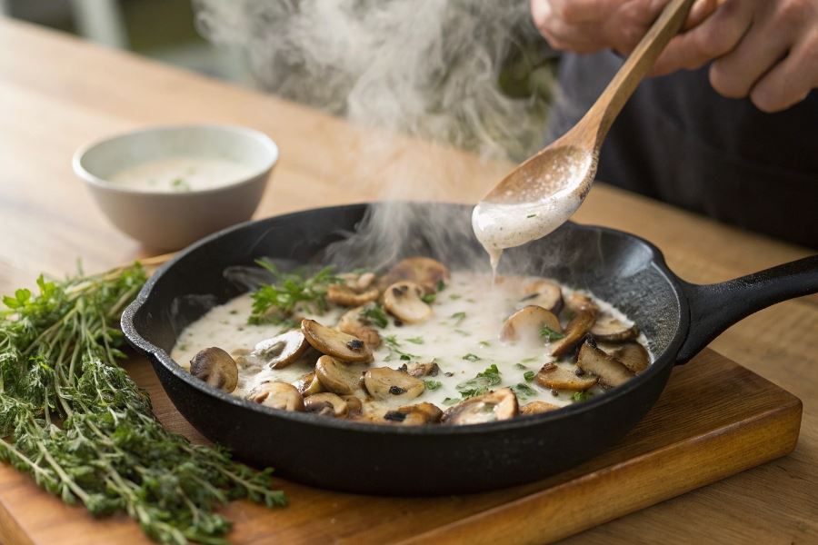 Krok po kroku: przygotowanie pieczarek w sosie śmietanowym na patelni