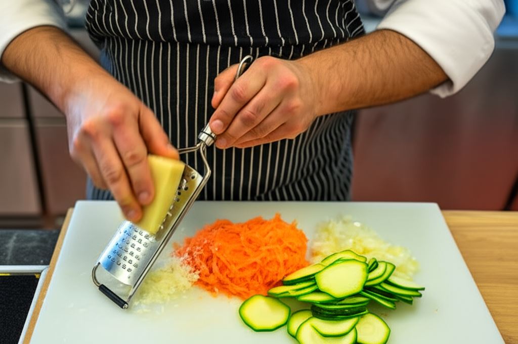 Cebulę posiekaj w kosteczkę. Pomidory pokrój w kostkę, ser, marchew i zetrzyj na tarce i włóż do osobnej miseczki. Cukinię pokrój w plastry, czosnek i natkę pietruszki drobno posiekaj.