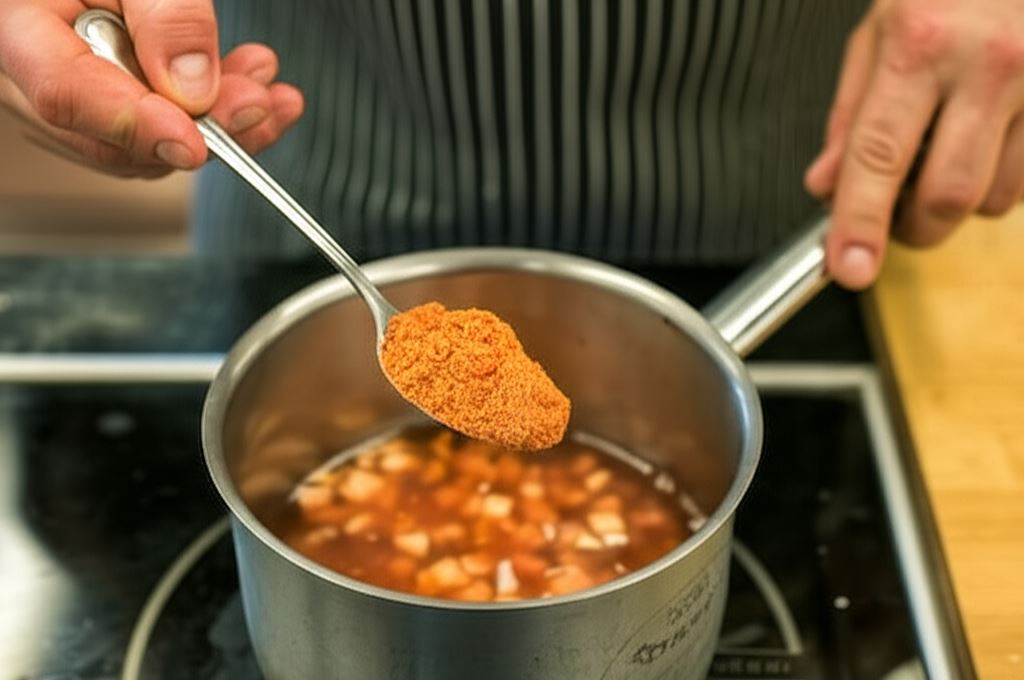 W niewielkim rondelku wymieszaj starte pomidory, resztę czosnku i szklankę wody z Fixem. Całość doprowadź do wrzenia.
