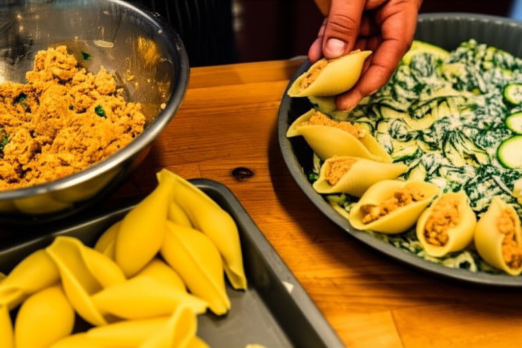 Muszle makaronowe wypełnione aromatycznym farszem to prawdziwa uczta dla podniebienia. To danie, które łączy w sobie delikatność makaronu z intensywnym smakiem mięsa i warzyw. Proces przygotowania zaczyna się od ugotowania rosołu na udkach, a następnie oddzielenia mięsa od kości. Muszle blanszujemy krótko w gotującej się wodzie, aby zachowały idealną strukturę.