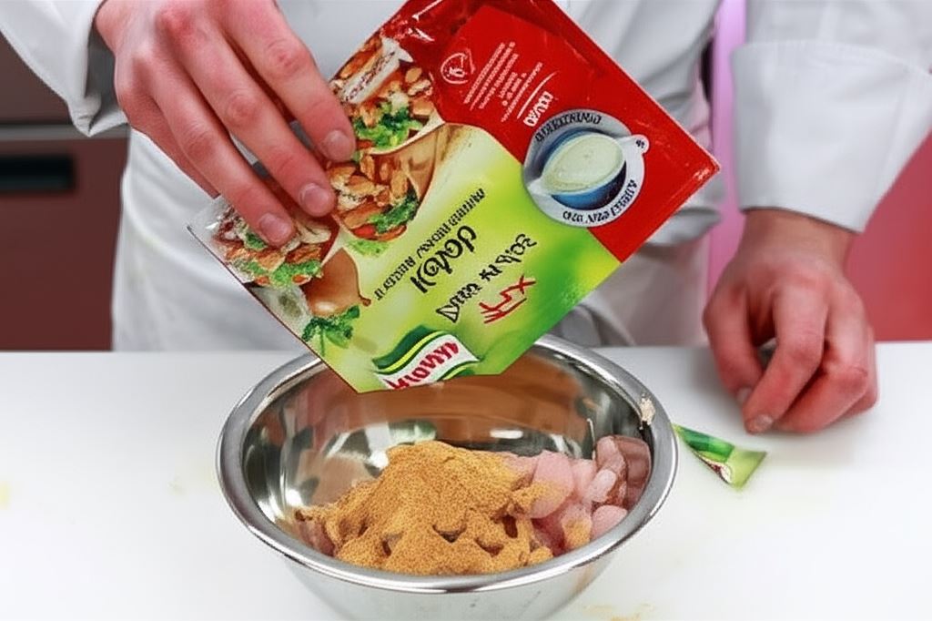 Indyka potnij na cienkie paski. Umieść w misce i połącz z Fixem Knorr. Potem podsmażaj mięso na patelni.