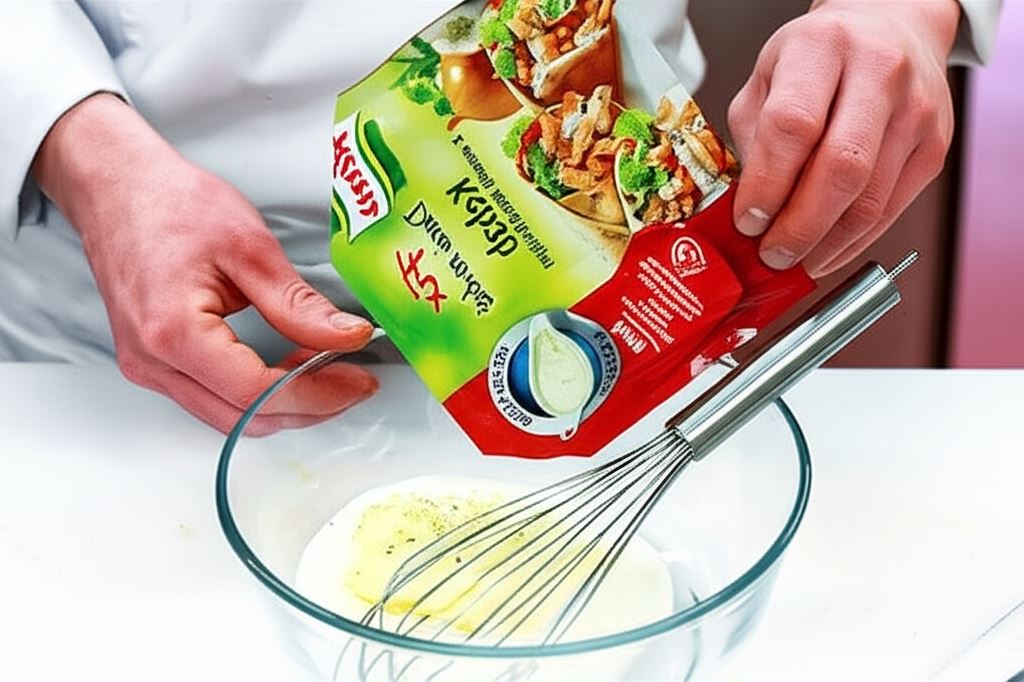 Połącz sos czosnkowy dołączony do Fixu Knorr z jogurtem oraz majonezem.