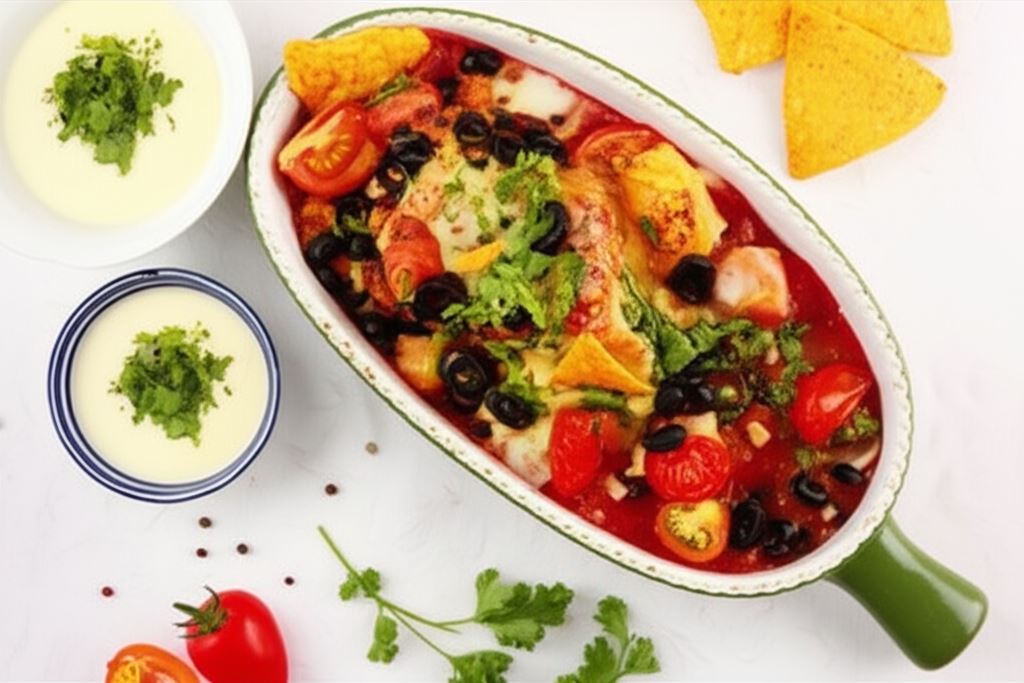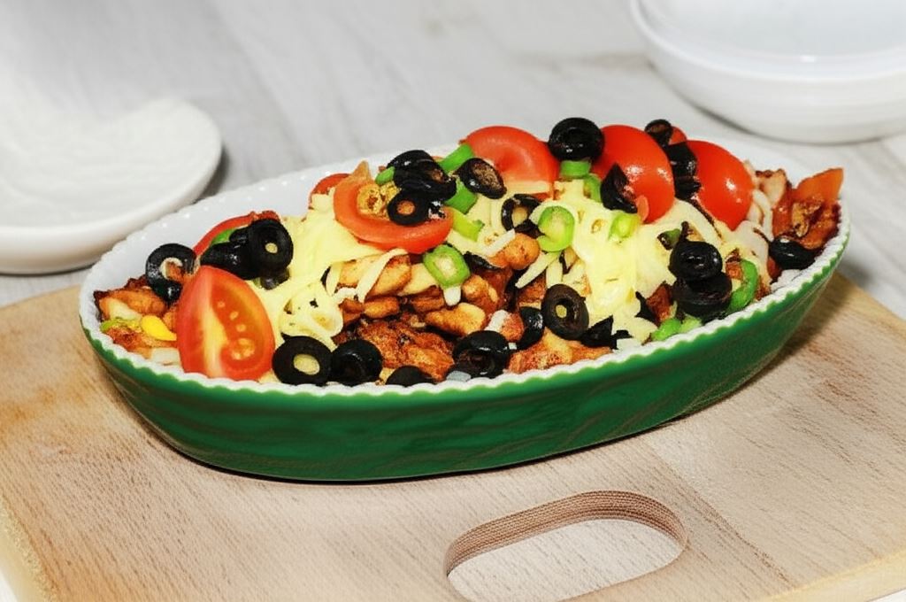 Chrupiące nachosy, soczyste mięso z indyka i aromatyczny sos czosnkowy tworzą kompozycję, która przeniesie Cię wprost do słonecznego Meksyku! To danie, które zachwyca nie tylko smakiem, ale również kolorowym wyglądem i prostotą przygotowania.