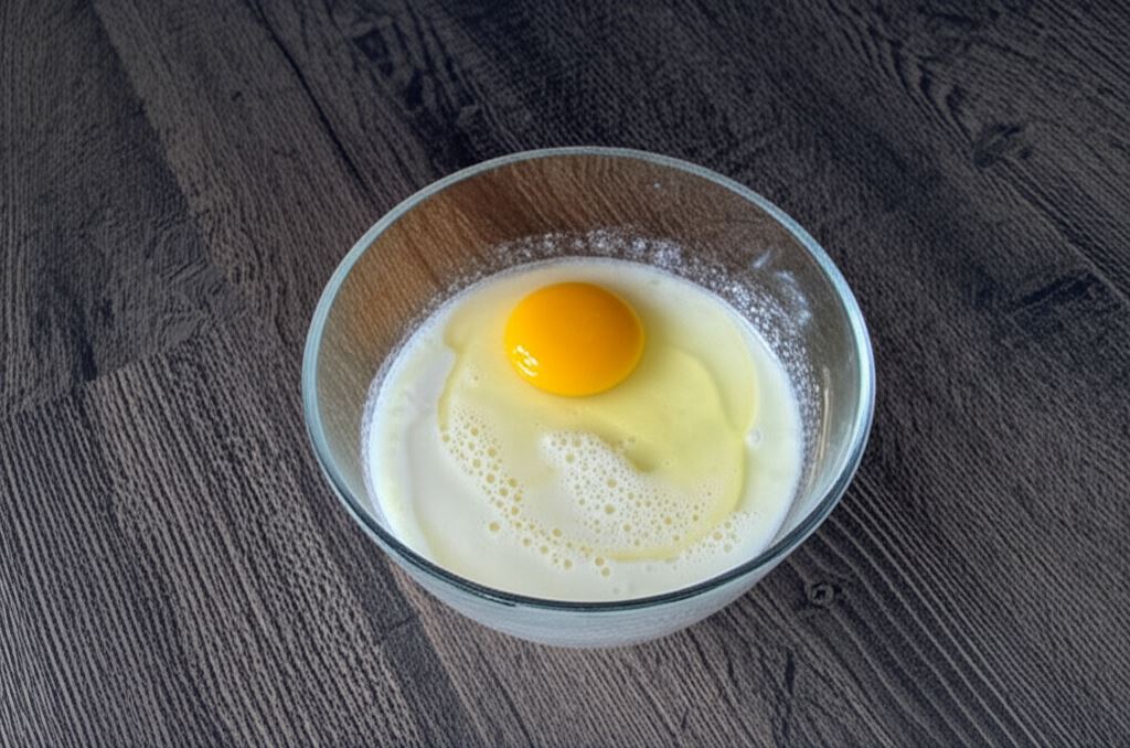 W misce połącz starannie trzepaczką wszystkie składniki ciasta.