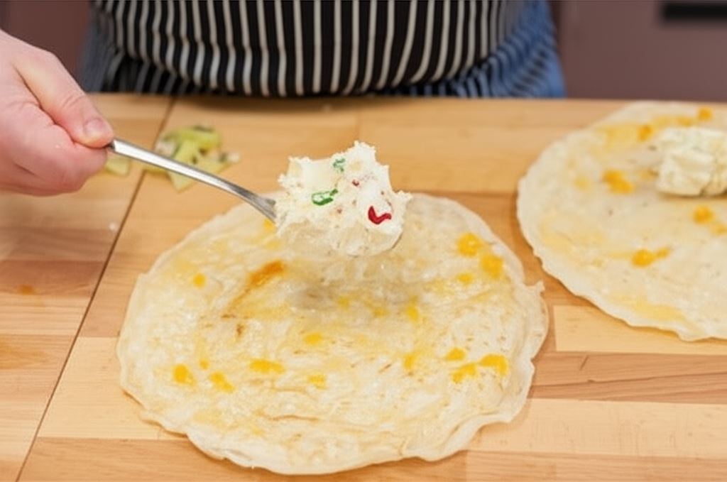 Naleśniki posmaruj konfiturą. Przygotowaną masę wyłóż na naleśnika.