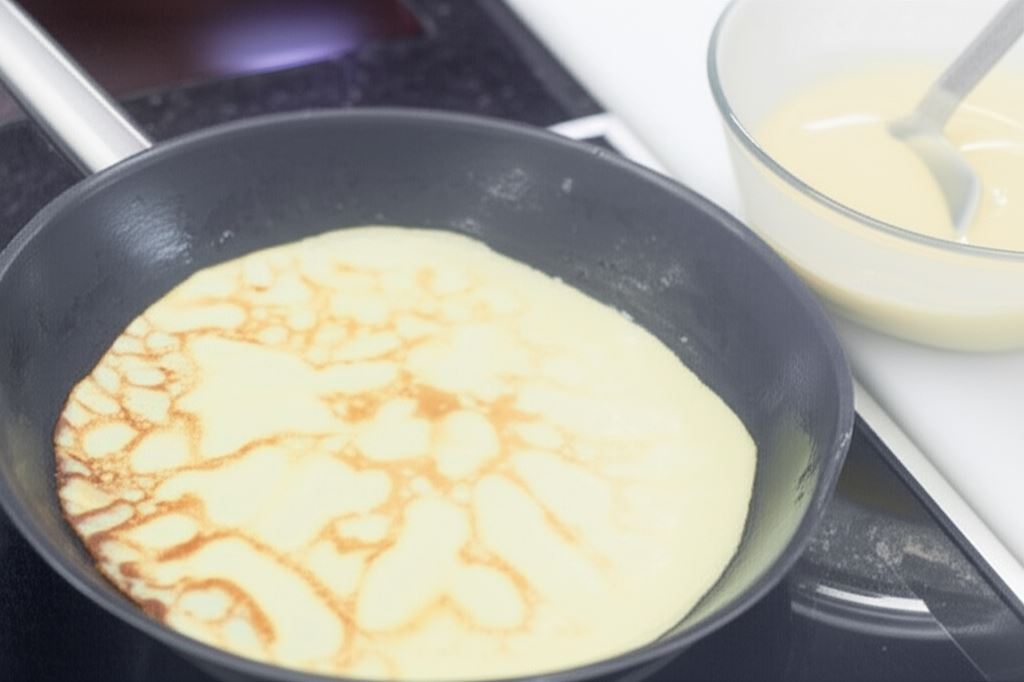 Z mąki, mleka, jajek, cukru waniliowego oraz oleju przygotuj masę, a następnie smaż naleśniki na złoty kolor po obu stronach. Pamiętaj, aby naleśniki smażyć na dobrze nagrzanej patelni.
