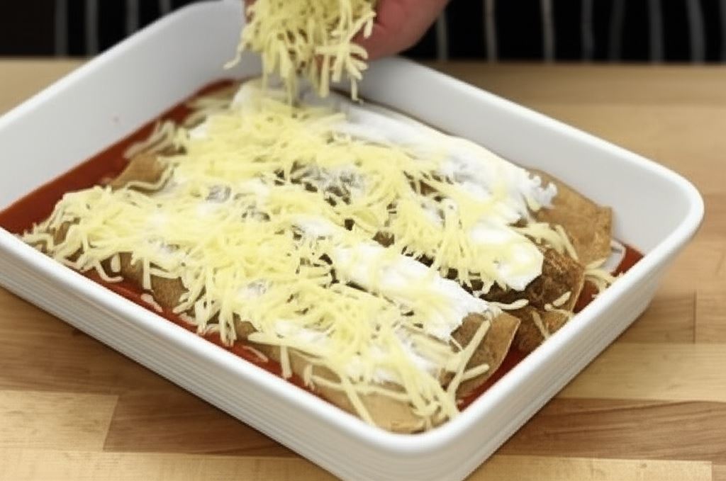 Naleśniki posmaruj resztą śmietany i obsyp startym serem. Zapiekaj 20 minut w temperaturze 190 °C.