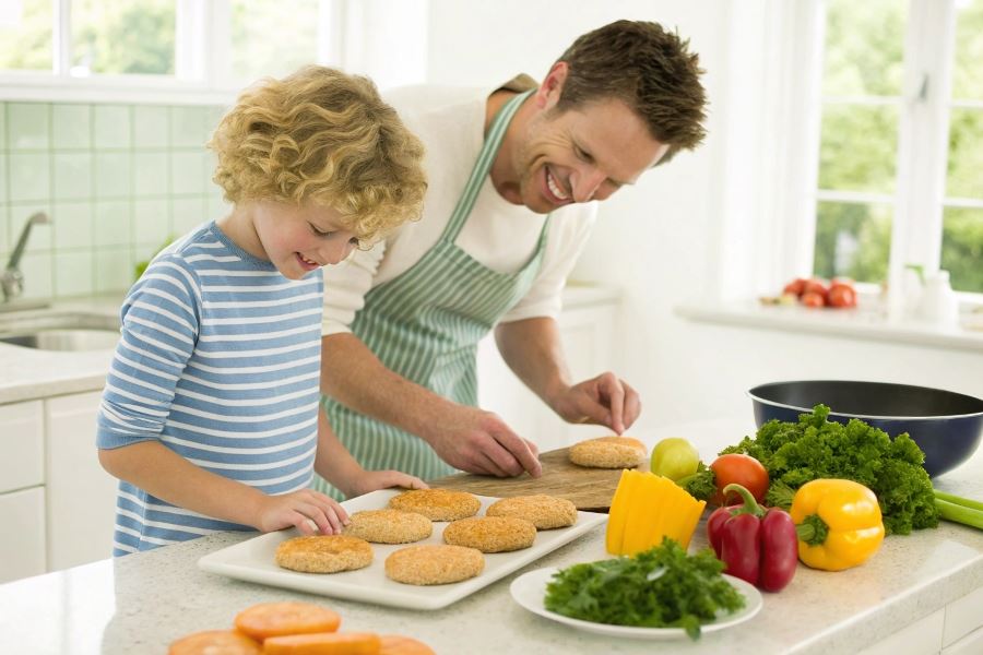 Sekret sukcesu: Pozwól dziecku uczestniczyć w przygotowaniu kotletów. Badania z 2024 roku pokazują, że dzieci chętniej próbują potraw, w których przygotowaniu brały udział.