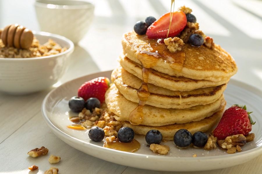 Naleśniki owsiane stanowią wyjątkowo wartościową opcję śniadaniową dzięki bogactwu składników odżywczych zawartych w płatkach owsianych. Płatki owsiane są źródłem błonnika rozpuszczalnego beta-glukanu, który skutecznie obniża poziom cholesterolu we krwi i stabilizuje poziom cukru. Zawierają również kompleks witamin z grupy B wspierających prawidłowe funkcjonowanie układu nerwowego oraz minerały takie jak magnez, żelazo i cynk niezbędne do utrzymania energii przez cały poranek.