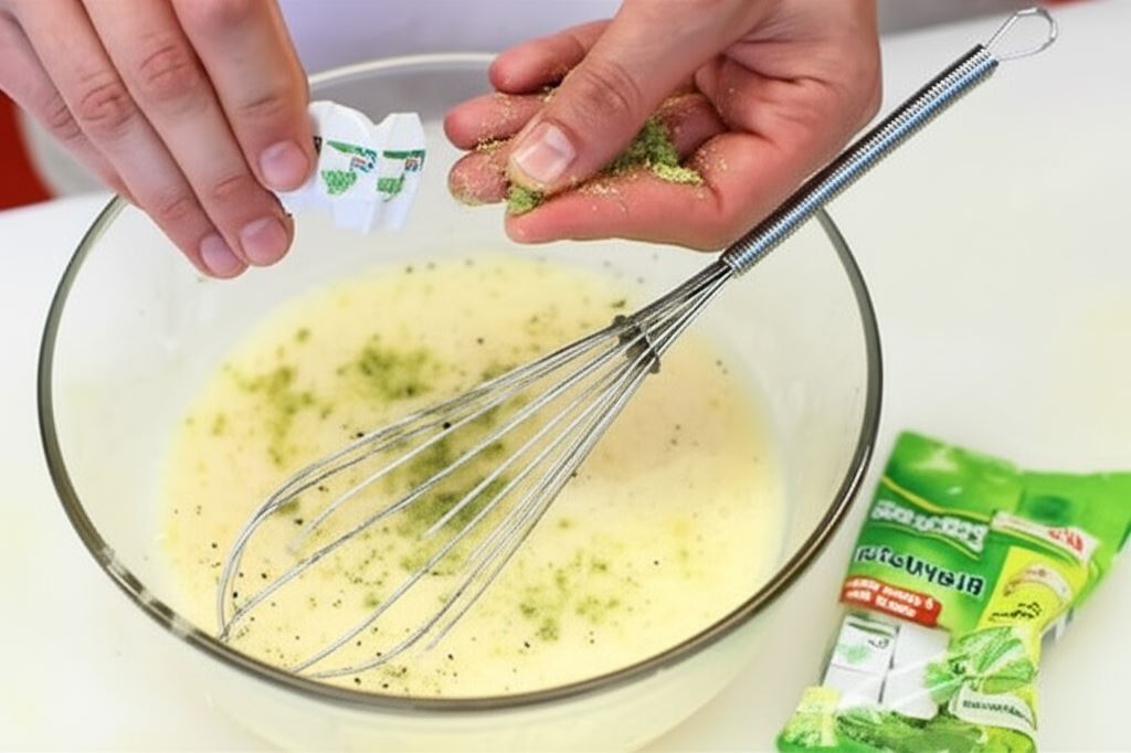 Roztrzep jajka, wlej mleko, dodaj rozdrobnioną Przyprawę w mini kostkach Pietruszka Knorr, pieprz, przelej do zamykanego pojemnika i potrząśnij, aby składniki się połączyły.