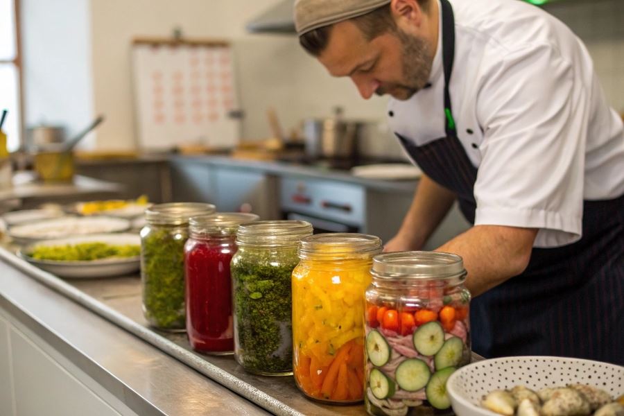Najczęstsze błędy przy przechowywaniu to przede wszystkim zbyt wysoka temperatura, używanie nieodpowiednich pojemników (zwłaszcza metalowych, które reagują z kwasami) oraz częste otwieranie pojemnika, co wprowadza nowe bakterie i przyspiesza psucie się potrawy.