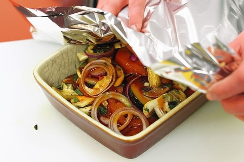 Przykryj danie folią aluminiową i piecz w temperaturze 200 stopni przez 30 minut.