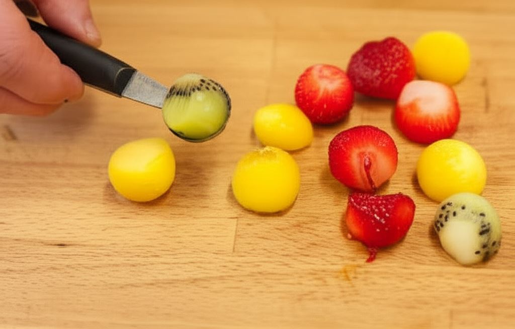 Wydrążanie kulek z owoców to nie tylko sposób na stworzenie efektownego deseru, ale również świetna metoda wykorzystania owoców, które nie są już idealnie świeże. Pozostałości po wydrążeniu kulek możesz wykorzystać do przygotowania koktajlu owocowego lub musu, którym polejesz gotową gąsienicę.