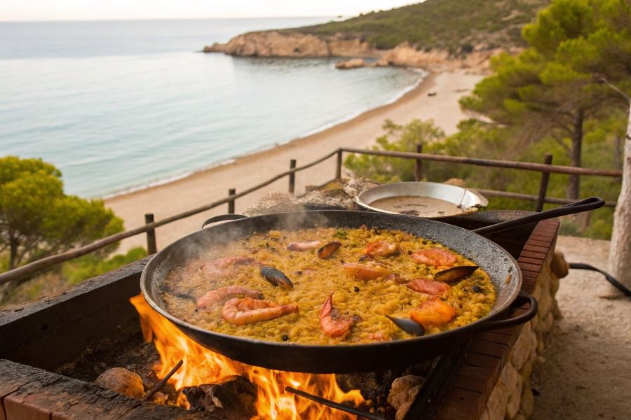 W Walencji przygotowanie paelli to nie tylko gotowanie – to ceremonia. Danie tradycyjnie przyrządza się na świeżym powietrzu, na ogniu z drewna pomarańczowego, co nadaje potrawie wyjątkowy aromat.