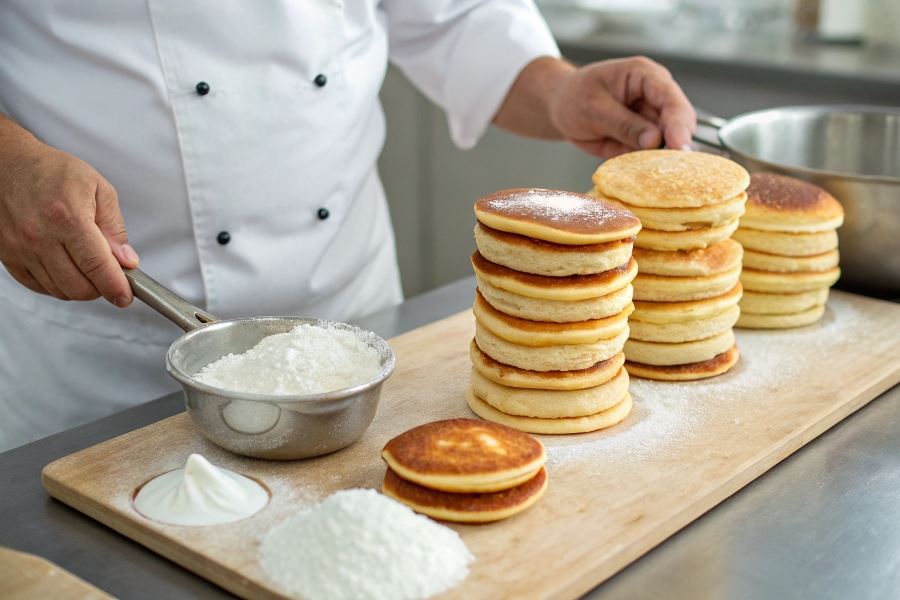 Ważna wskazówka: Proszek do pieczenia najlepiej dodawać do suchych składników i dokładnie wymieszać przed połączeniem z mokrymi składnikami, co zapewni równomierne rozprowadzenie w cieście naleśnikowym.