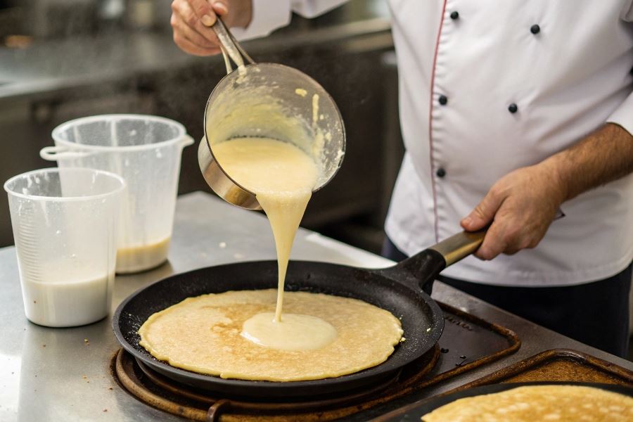 Smażenie i serwowanie naleśników z mlekiem i wodą