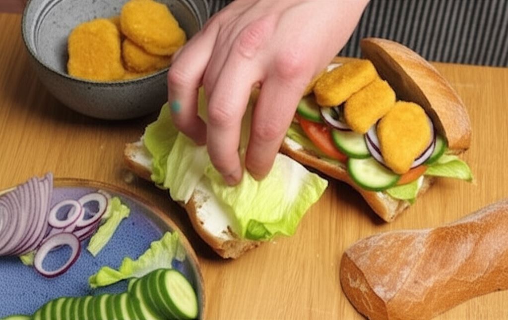 Przygotowanie jest proste – wystarczy upiec roślinne nuggetsy, podgrzać bułki panini i ułożyć wszystkie składniki warstwami. Ciepłe, chrupiące pieczywo w połączeniu z delikatnymi nuggetsami tworzy harmonijną całość, która zachwyca od pierwszego kęsa.