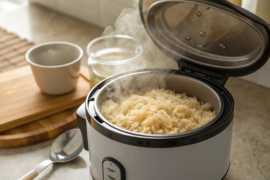 - Funkcja podtrzymywania ciepła – ryż pozostaje ciepły i gotowy do podania przez wiele godzin