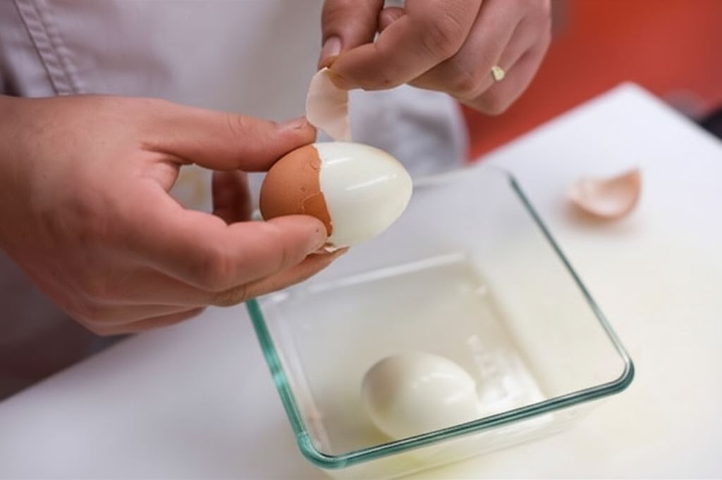 Jajka ugotuj na twardo, następnie wystudź i obierz.