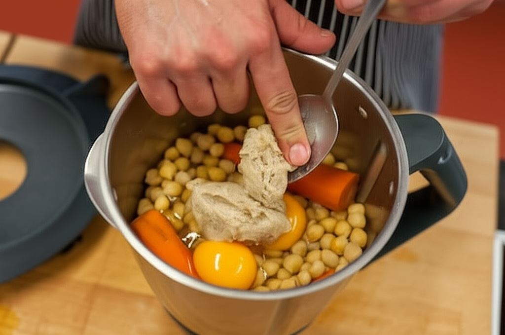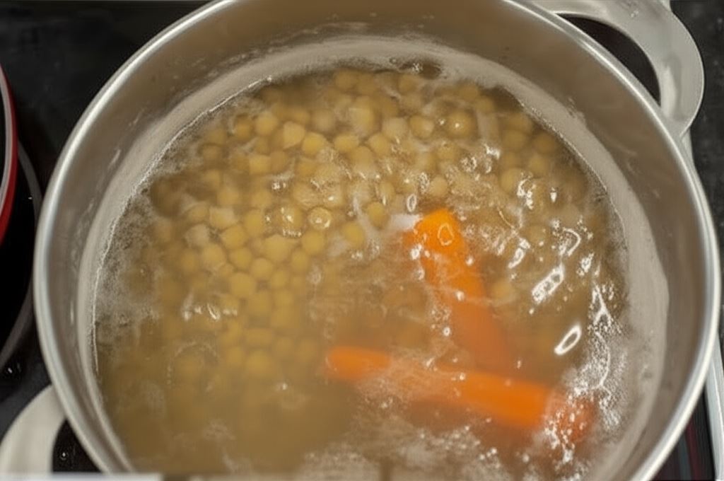 Dzień przed namocz ciecierzycę w zimnej wodzie. Następnego dnia opłucz ją i zalej nową wodą. Potem dodaj marchew i gotuj aż zmięknie.