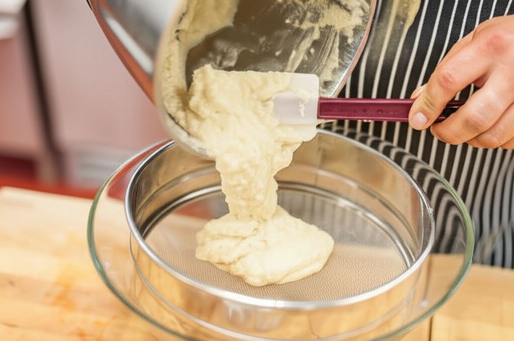 Fasolę zamocz na noc w zimnej wodzie. Następnego dnia przepłucz fasolę i ugotuj ją do miękkości. Ugotowaną fasolę zmiel, po czym przeciśnij przez sito.