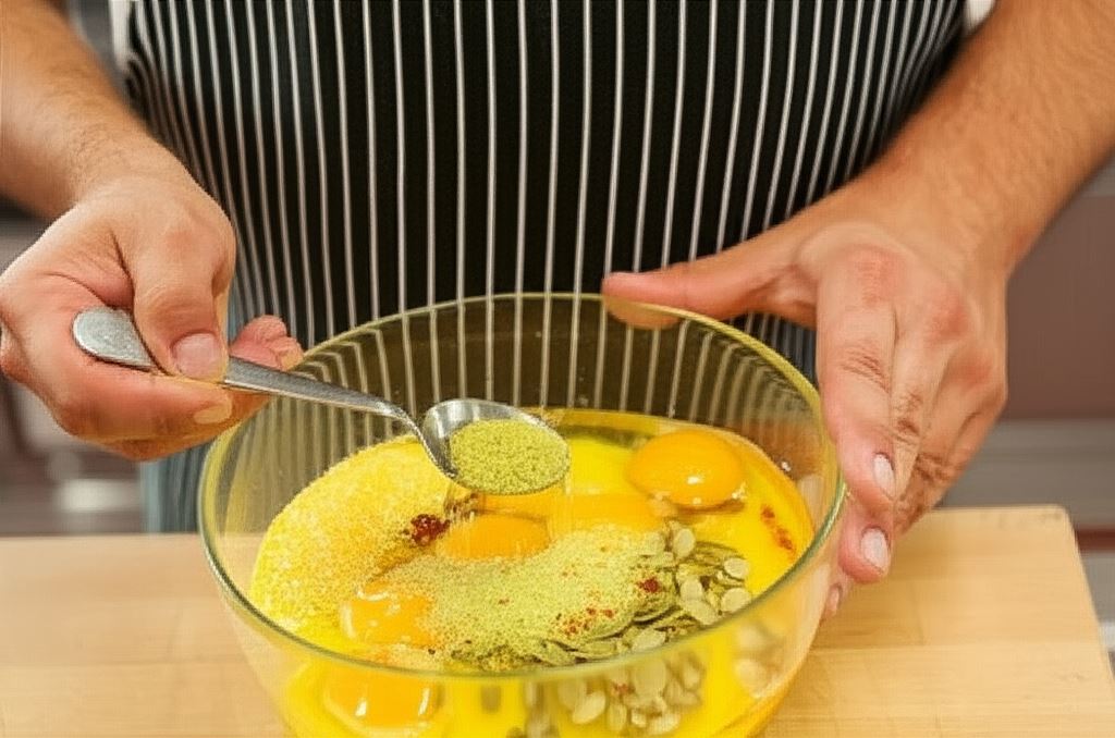 Eksperymentuj z przyprawami! Podstawowa wersja zawiera curry, pastę chili i imbir, ale możesz dodać również suszone zioła – rozmaryn, tymianek czy szałwię. Pestki dyni można zastąpić słonecznikiem, orzechami włoskimi lub migdałami. Dla bardziej wyrazistego smaku, dodaj podsmażoną cebulkę z czosnkiem lub suszone pomidory.