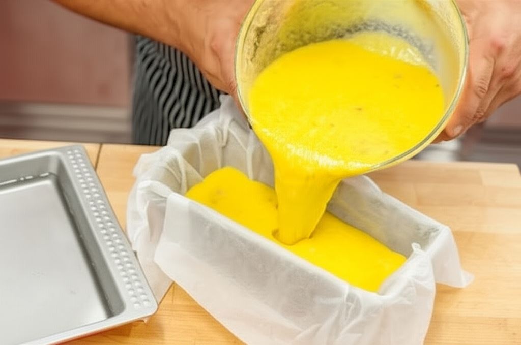 Przyprawiony farsz włóż do podłużnej formy do ciasta, wcześniej wyścielonej papierem do pieczenia. Formę dodatkowo obwiń folią aluminiową, postaw na blasze do pieczenia napełnionej wodą. Całość umieść w rozgrzanym do 200°C piekarniku na około 60 minut.
