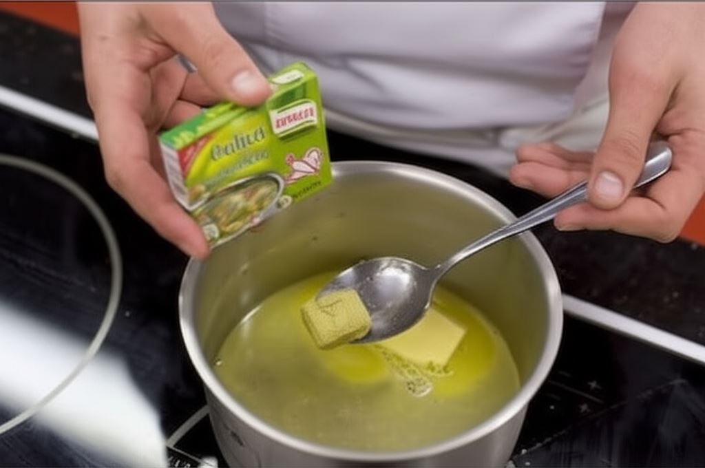 Do 1 szklanki wrzątku dodaj margarynę, Bulion na włoszczyźnie Knorr, selera, czosnek i cebulę. Gotuj składniki na pasztet z selera na małym ogniu przez około godzinę.