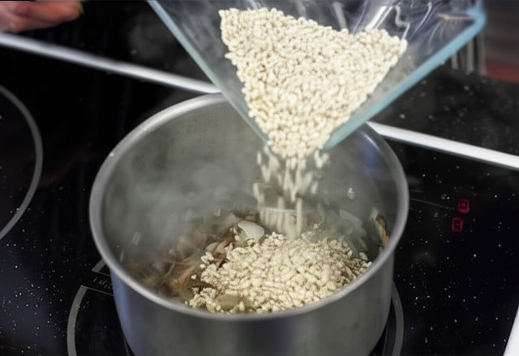 Całość zalej odstawionym wywarem i aby potrawa zyskała pełnię smaku - wsyp Bulion grzybowy na borowikach leśnych Knorr.