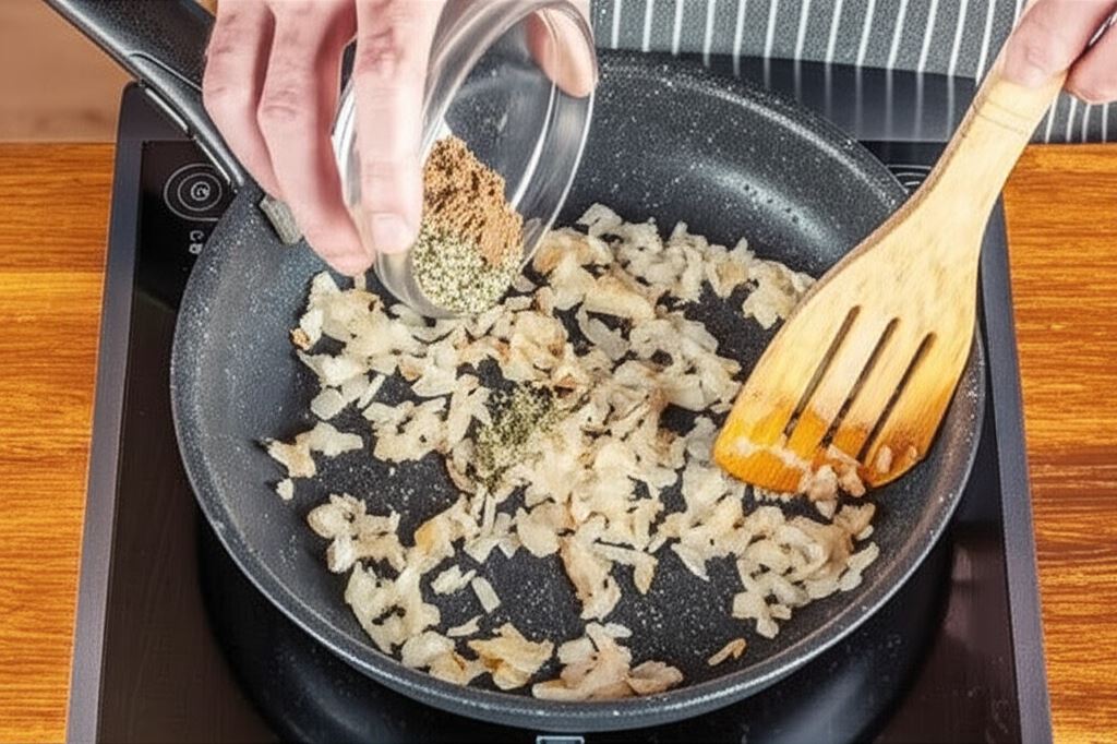 Na patelni z oliwą zrumień czosnek z cebulką. Kiedy się zarumienią dodaj wszystkie przyprawy Knorr i smaż jeszcze przez 1 minutę.