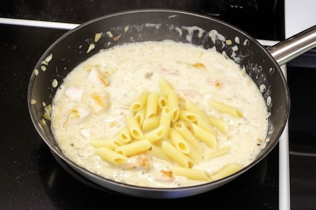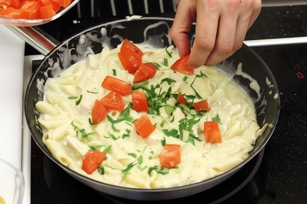 Możesz eksperymentować z dodatkami – spróbuj dodać suszone pomidory zamiast świeżych lub zastąp kurczaka krewetkami dla bardziej wykwintnej wersji. Możesz również wzbogacić sos o odrobinę białego wina, które nada potrawie głębszy, bardziej złożony smak.