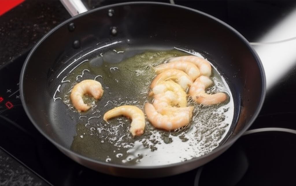 Smaż krewetki na gorącej oliwie przez 3 minuty.