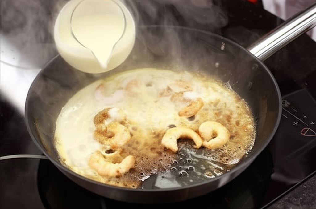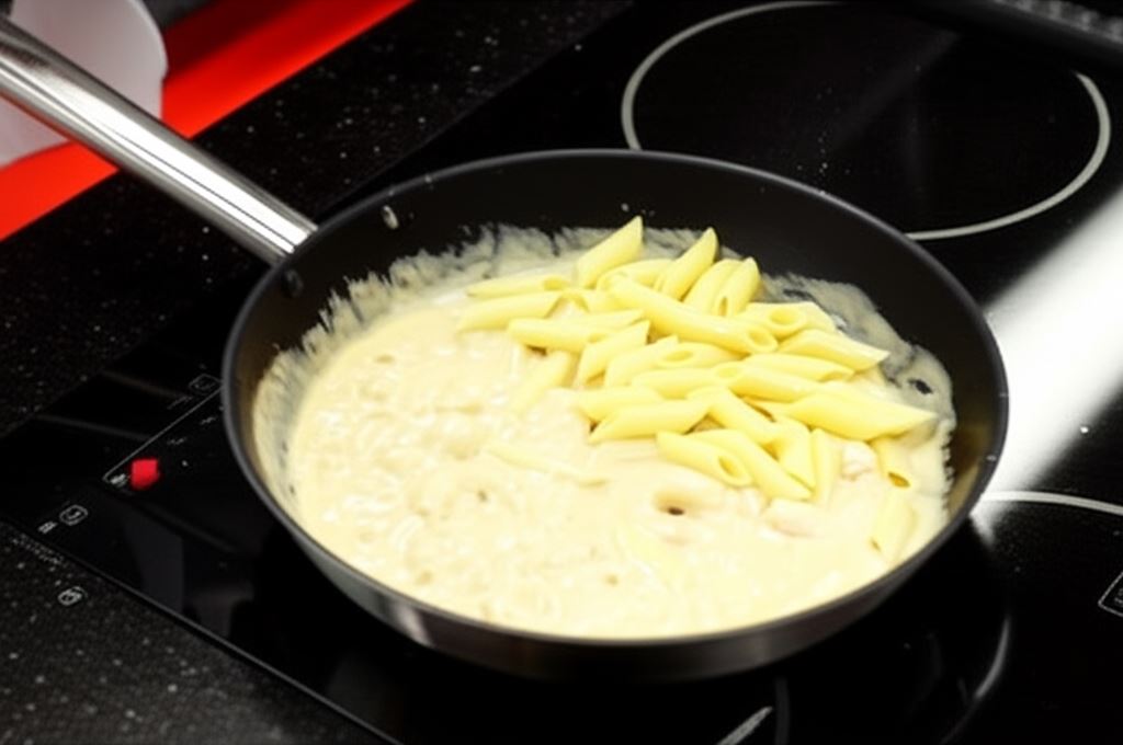 Sporządź sos, mieszając śmietanę z pokruszoną Przyprawą w mini kostkach Smażona Cebula Knorr. Potem doprowadź do wrzenia.