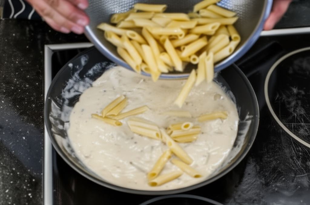 Makaron penne z soczystym kurczakiem i pomidorkami cherry w aksamitnym sosie to propozycja, która zachwyci każdego miłośnika włoskich smaków. To danie, w którym delikatne kawałki kurczaka idealnie komponują się z al dente ugotowanym makaronem i słodkimi pomidorkami. Jedwabisty sos na bazie śmietanki otula każdy składnik, tworząc harmonijną całość pełną smaku.