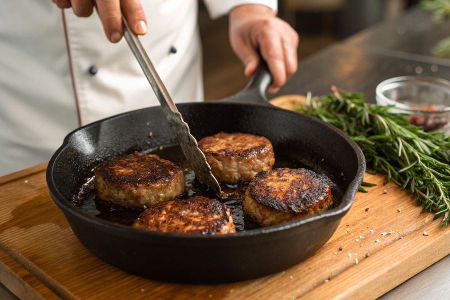 Profesjonalny trik: przed smażeniem kotlety wołowe warto wyjąć z lodówki na 30 minut wcześniej, aby osiągnęły temperaturę pokojową. Dzięki temu mięso smaży się równomiernie, a środek nie pozostaje zimny przy przyrumienionym brzegu.