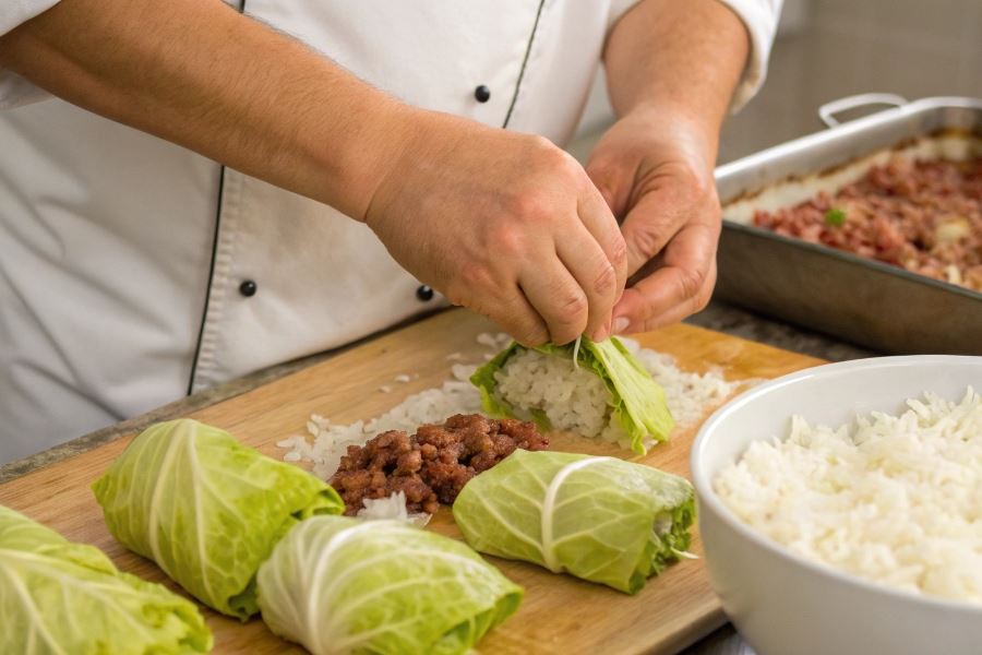 Kluczem do idealnych gołąbków jest stopień ugotowania ryżu przed dodaniem go do farszu. Ryż powinien być ugotowany do stanu al dente – około 70% gotowości. Zbyt miękki ryż sprawi, że farsz będzie mazisty, natomiast niedogotowany pozostanie twardy nawet po upieczeniu gołąbków. Najlepsze rezultaty daje płukanie ryżu przed i po gotowaniu, co usuwa nadmiar skrobi i zapobiega sklejaniu ziaren.