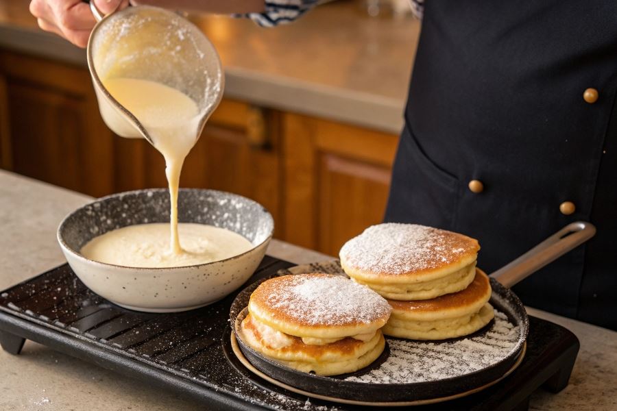 Ciasto na naleśniki z serem powinno mieć konsystencję przypominającą śmietanę – powinno swobodnie spływać z łyżki, ale jednocześnie zachować odpowiednią gęstość, by dobrze rozprowadzać się na patelni.