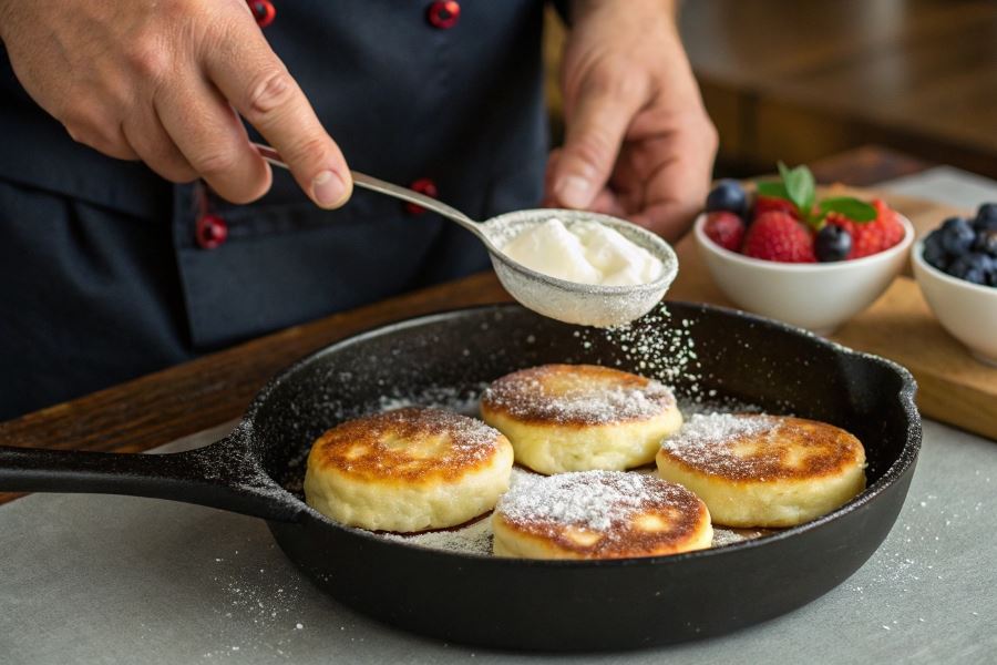 Profesjonalna wskazówka: Przed dodaniem jajek do masy serowej, roztrzep je osobno. Dzięki temu składniki połączą się równomierniej, a syrniki będą miały jednolitą strukturę.