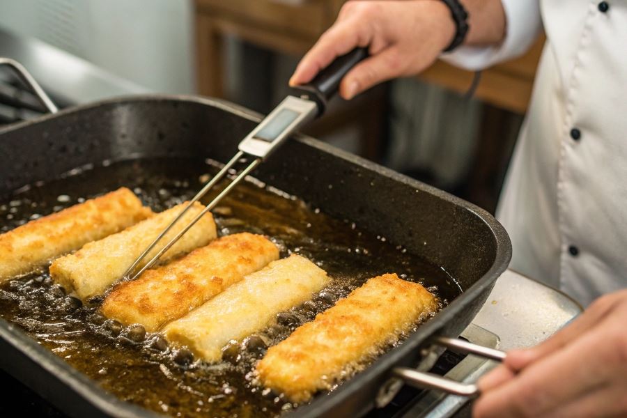 Profesjonalna wskazówka: Zainwestuj w termometr kuchenny z sondą do głębokiego smażenia. Pozwoli to precyzyjnie kontrolować temperaturę oleju i uzyskać powtarzalne rezultaty za każdym razem.