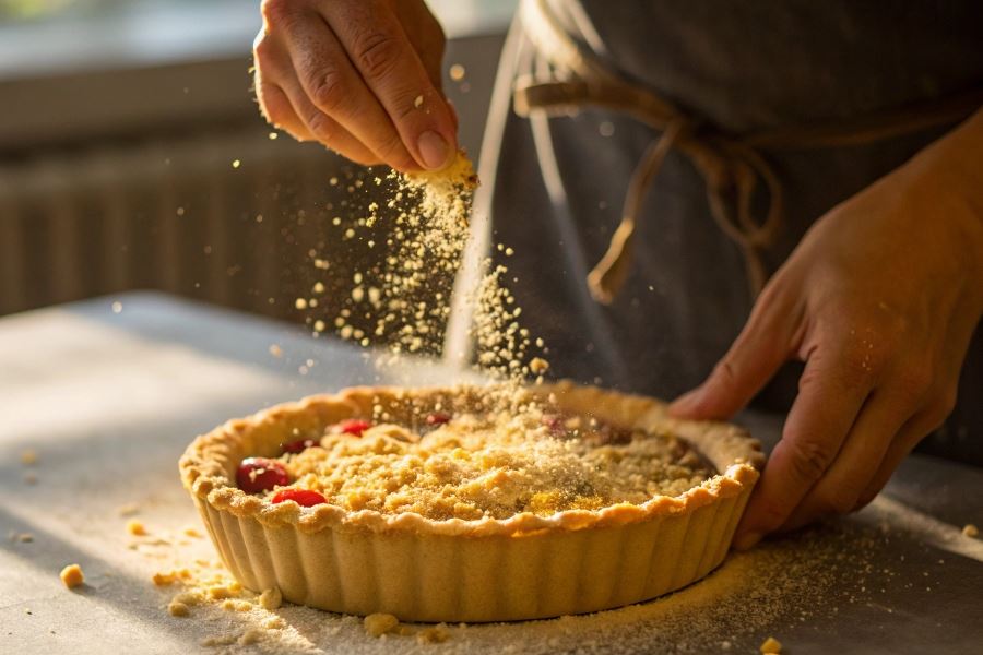 Wskazówka eksperta: Temperatura składników to klucz do sukcesu. Zbyt ciepłe masło sprawi, że kruszonka zamieni się w ciasto, a zbyt zimne będzie trudne do połączenia z pozostałymi składnikami. Optymalna temperatura to masło wyjęte z lodówki na około 5-10 minut przed przygotowaniem.